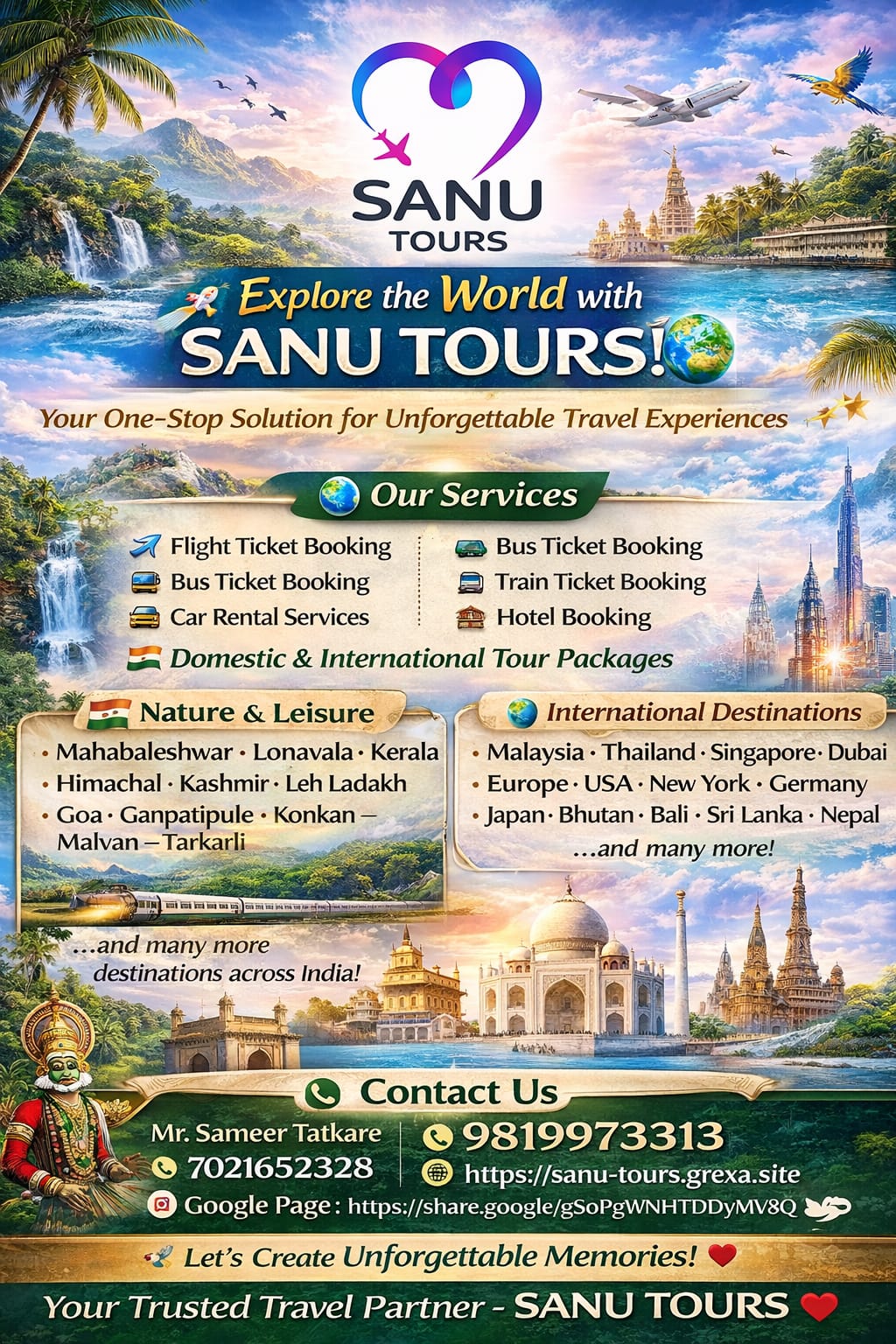 Tours Top Destinations Maldives Sunny Ari Atoll $2350.00 Proin gravida nibh vel velit auctor aliquet. Aenean sollicitudin, lorem quis bibendum auctor. View Details England Majestic Big Ben $1635.00 Proin gravida nibh vel velit auctor aliquet. Aenean sollicitudin, lorem quis bibendum auctor. View Details Italy Discover Venice $1550.00 Proin gravida nibh vel velit auctor aliquet. Aenean sollicitudin, lorem quis bibendum auctor. View Details Turky Historical Istanbul $1250.00 Proin gravida nibh vel velit auctor aliquet. Aenean sollicitudin, lorem quis bibendum auctor. View Details France Amazing Eiffel Tower $2350.00 Proin gravida nibh vel velit auctor aliquet. Aenean sollicitudin, lorem quis bibendum auctor. View Details Switzerland Faithful Swiss Alps $1425.00 Proin gravida nibh vel velit auctor aliquet. Aenean sollicitudin, lorem quis bibendum auctor. View Details Spain Elegant Madrid $1425.00 Proin gravida nibh vel velit auctor aliquet. Aenean sollicitudin, lorem quis bibendum auctor. View Details Spain Brave Barcelona $1350.00 Proin gravida nibh vel velit auctor aliquet. Aenean sollicitudin, lorem quis bibendum auctor. View Details Brazil Tall Rio de Janeiro $2150.00 Proin gravida nibh vel velit auctor aliquet. Aenean sollicitudin, lorem quis bibendum auctor. View Details